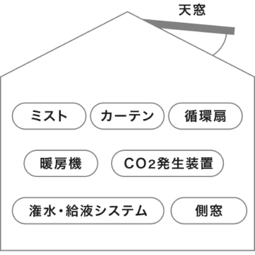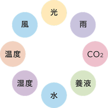 恵まれた自然環境を最大限に活かすために、Tファームいしいでは、情報通信技術(ICT)など、新しい技術を積極的に取り入れ、環境データをセンサー等で24時間測定しています。集められたデータを元に管理方法を決定し、トマトが光合成しやすい最適な環境に近づけています。光合成を活発に行ったトマトは、たくさんの糖を果実に蓄えた美味しいトマトに育ちます。